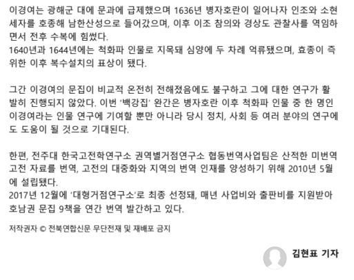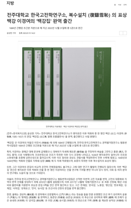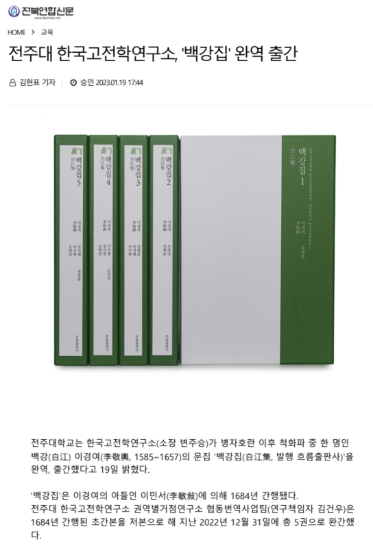 [기타] [출간] 협동번역팀, 국역 《백강집》 5책 완역 출간(2022.12)