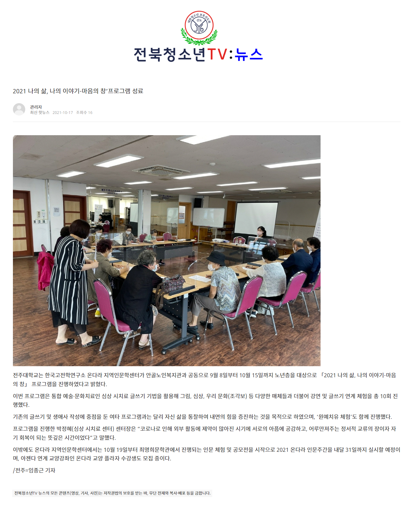2021 나의 삶, 나의 이야기-마음의 창’프로그램 성료