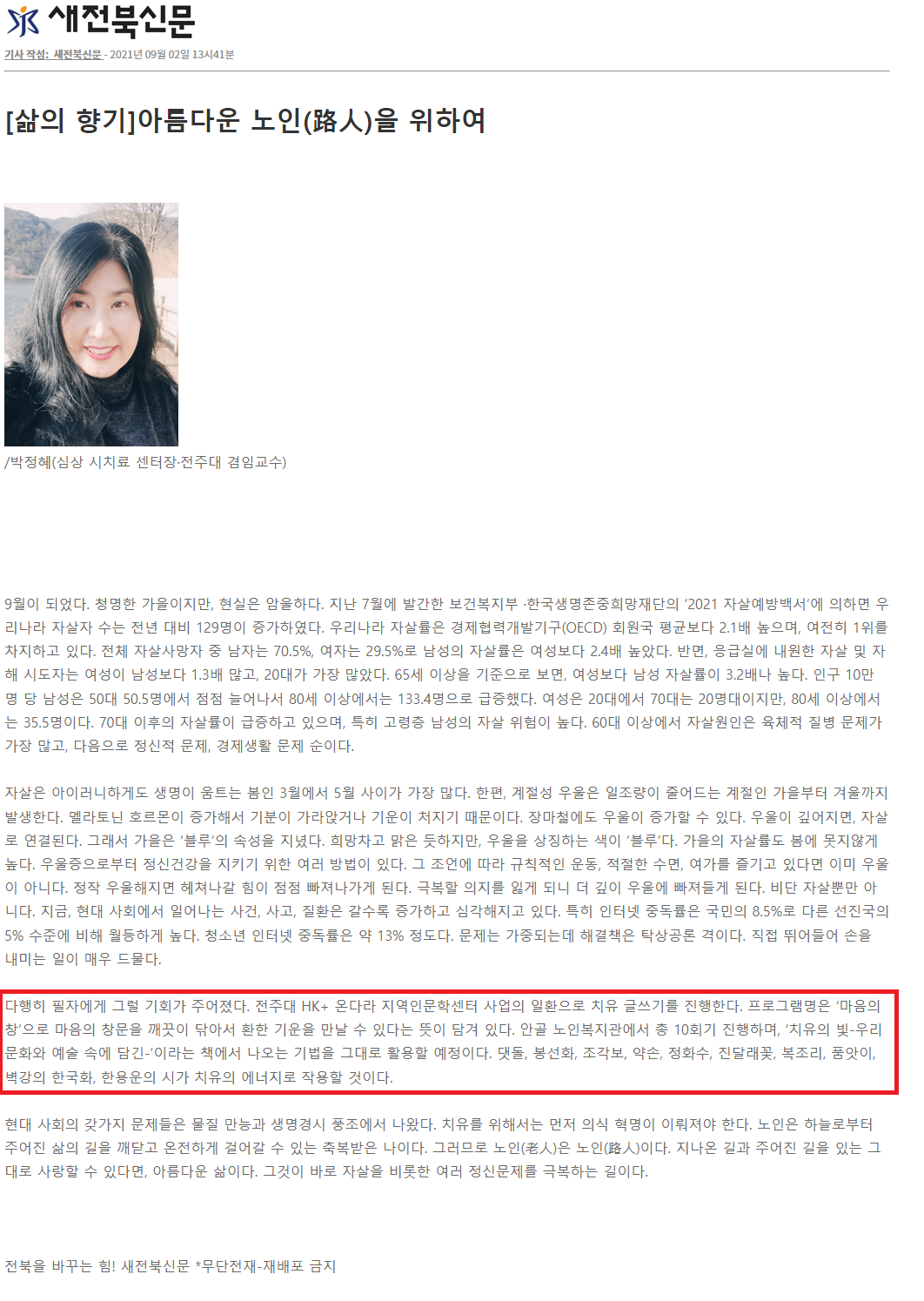 | 489 | 기타 | [삶의 향기]아름다운 노인(路人)을 위하여 | 온다라 지역인문학센터 | 22-01-25 | 192 |