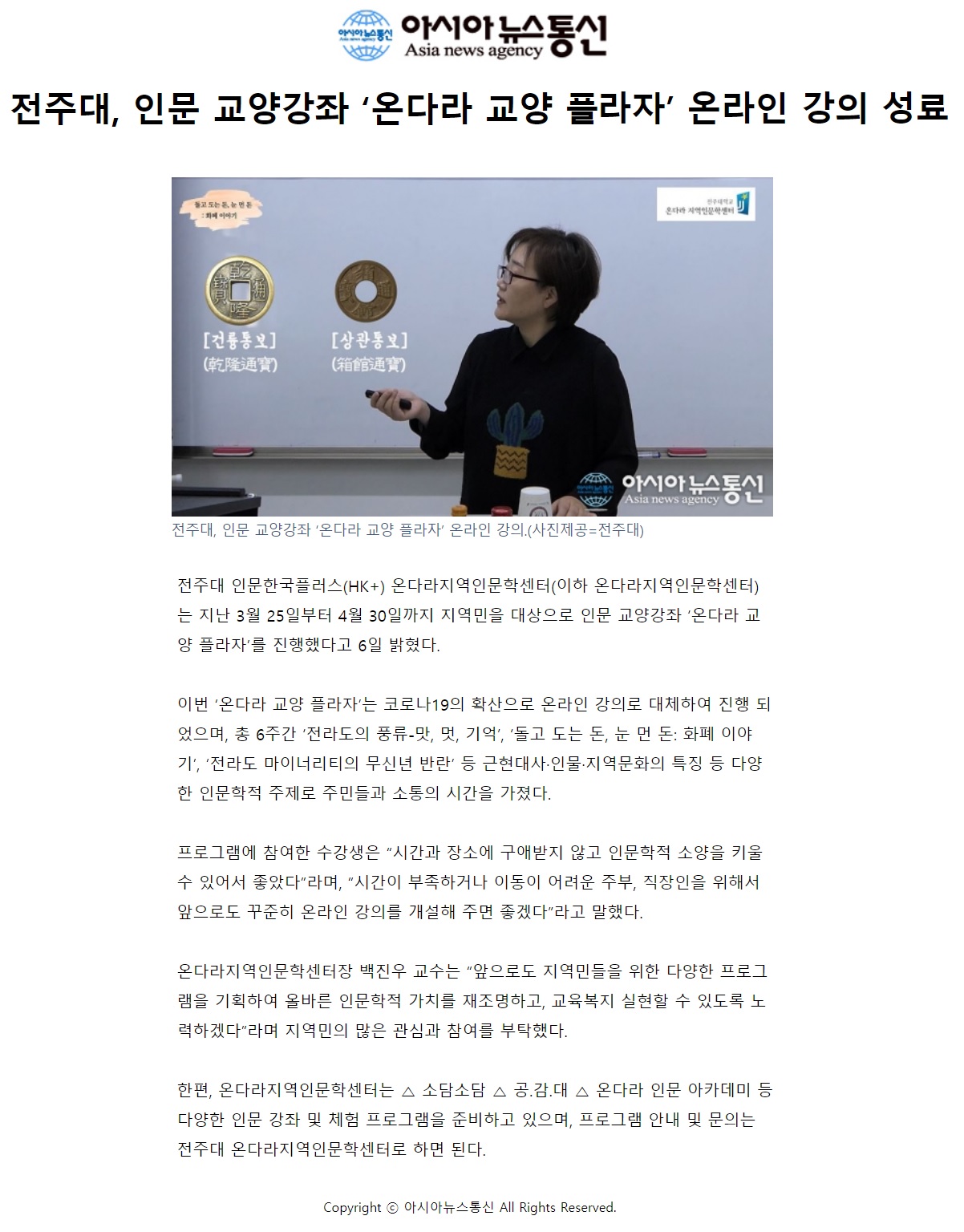 전주대, 인문 교양강좌 '온다라 교양 플라자' 온라인 강의 성료