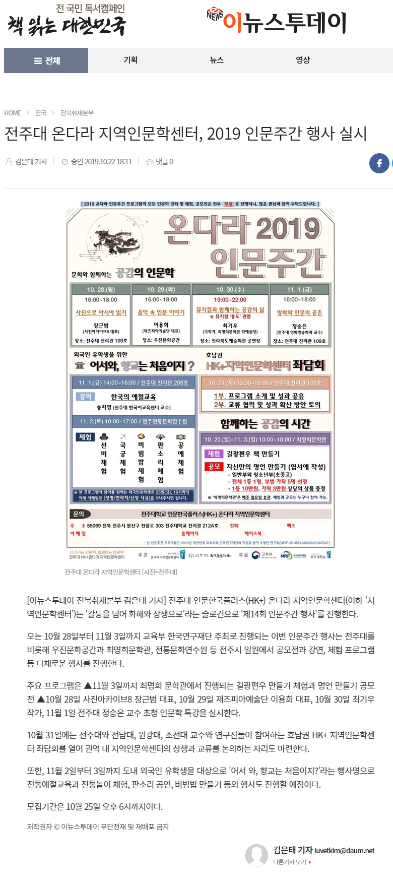 온다라 지역인문학센터, 2019 인문주간 행사 실시