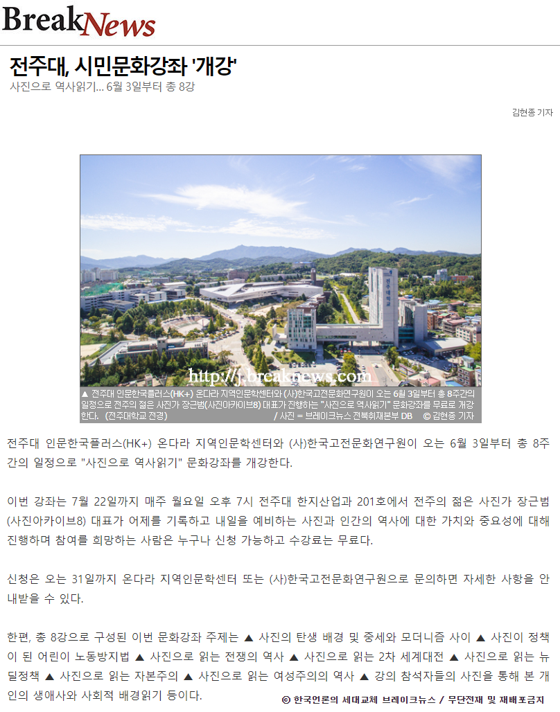 전주대, 시민문화강좌 '사진으로 역사읽기' 진행