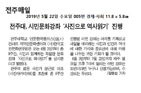 | 218 | 기타 | 전주대, 시민문화강좌 '사진으로 역사읽기' 진행 | 온다라 지역인문학센터 | 20-02-27 | 213 |