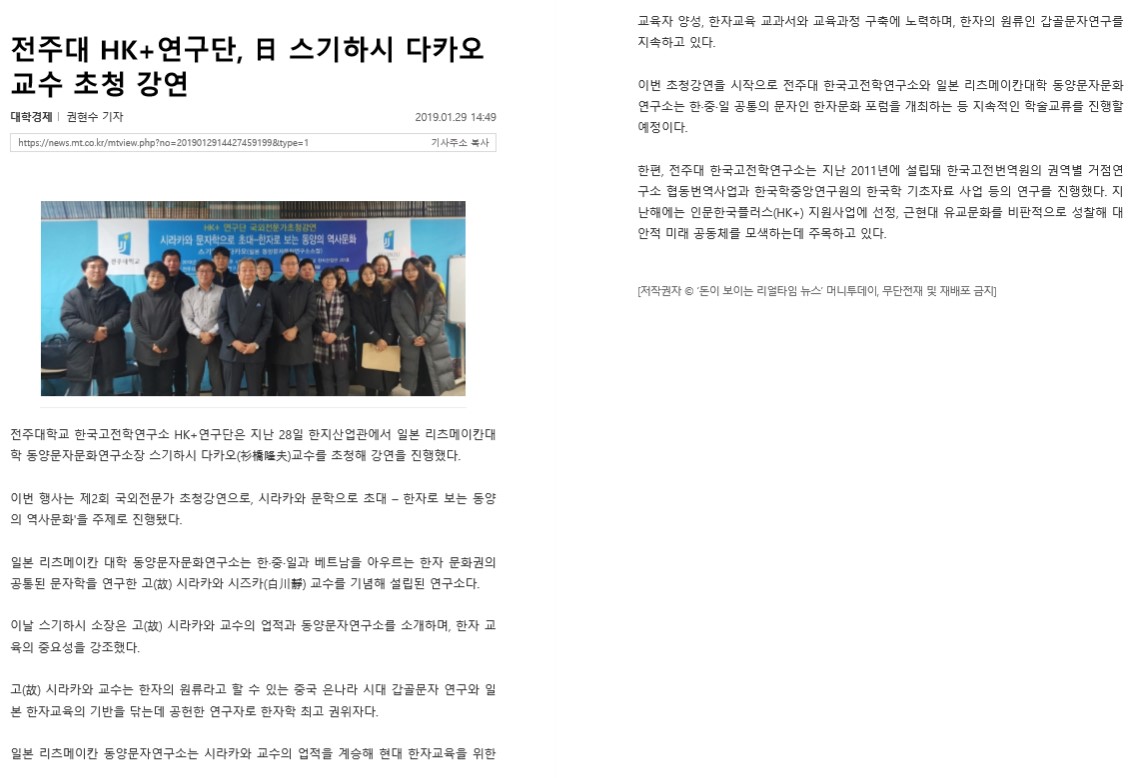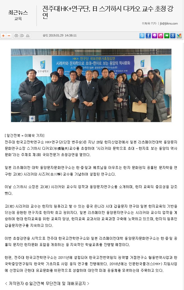 전주대 HK+연구단, 日 스기하시 다카오 교수 초청 강연