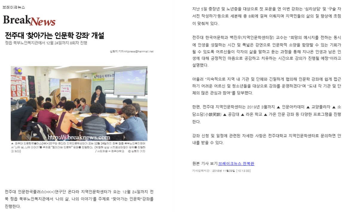 | 101 | 기타 | 전주대 '찾아가는 인문학 강좌' 개설 | 온다라 지역인문학센터 | 19-08-10 | 219 |