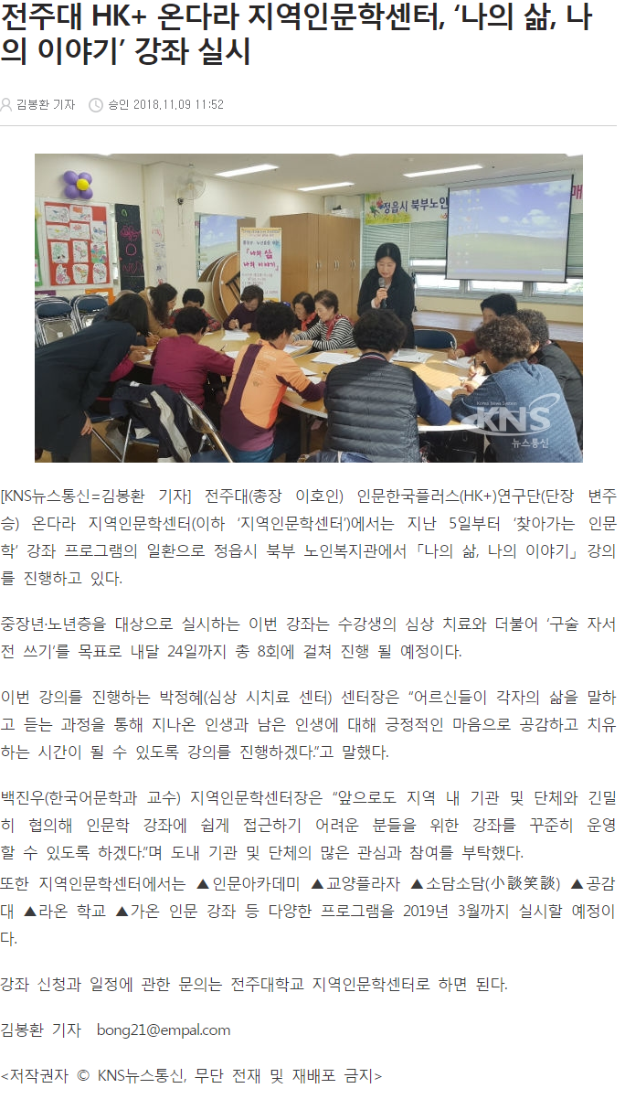 전주대 HK+ 온다라 지역인문학센터, ‘나의 삶, 나의 이야기’ 강좌 실시