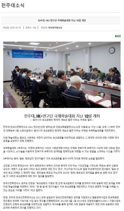 | 70 | 기타 | 전주대, HK+연구단 국제학술대회 지난 18일 개최 | 온다라 지역인문학센터 | 19-08-08 | 220 |