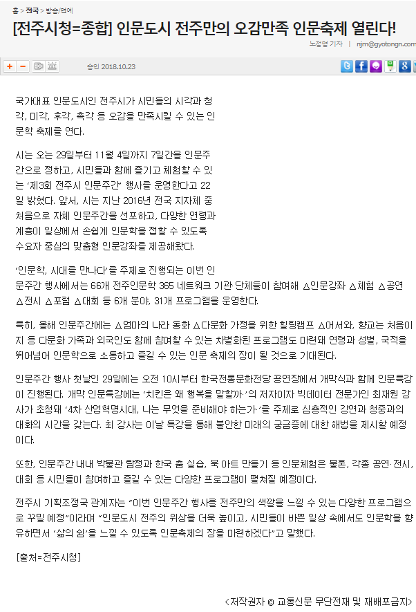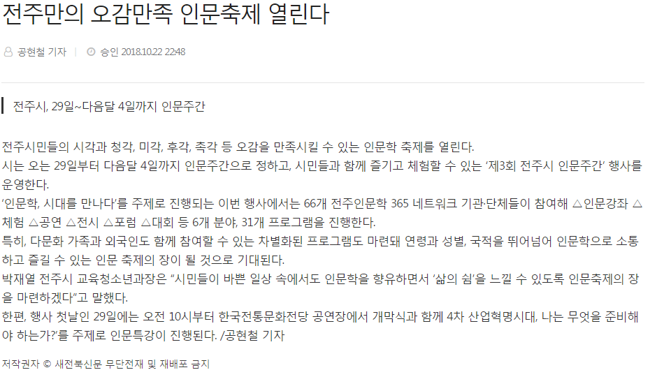 <전주시청> 인문도시 전주만의 오감만족 인문축제 열린다!
