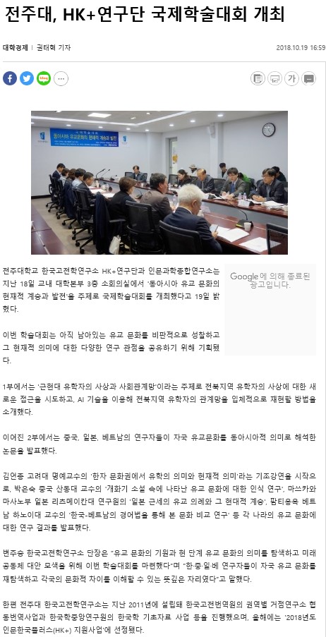 | 67 | 기타 | 전주대, HK+연구단 국제학술대회 지난 18일 개최 | 온다라 지역인문학센터 | 19-08-08 | 224 |