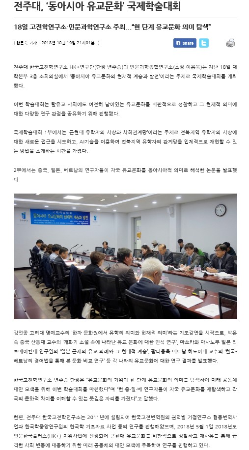 전주대, ‘동아시아 유교문화’ 국제학술대회