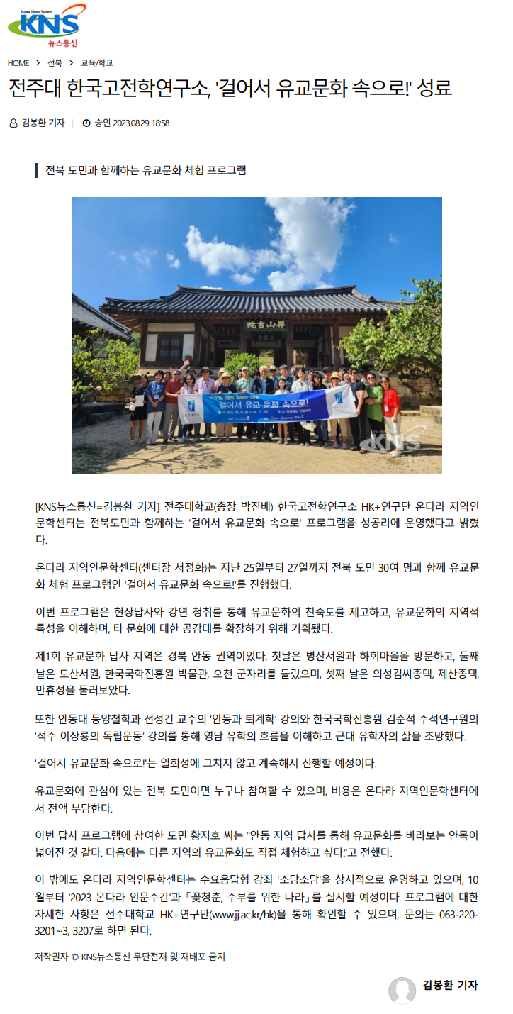 전주대학교 한국고전학연구소, '걸어서 유교문화 속으로!' 성료