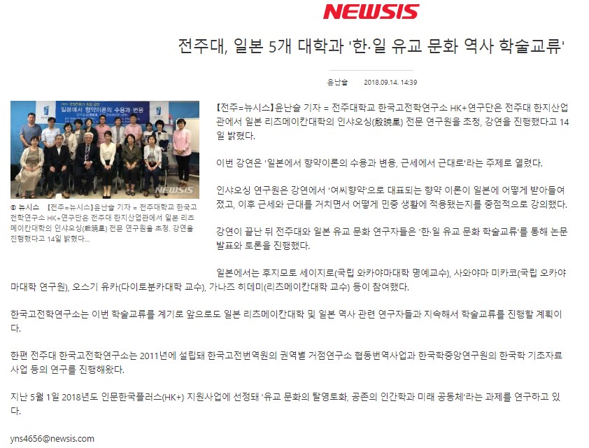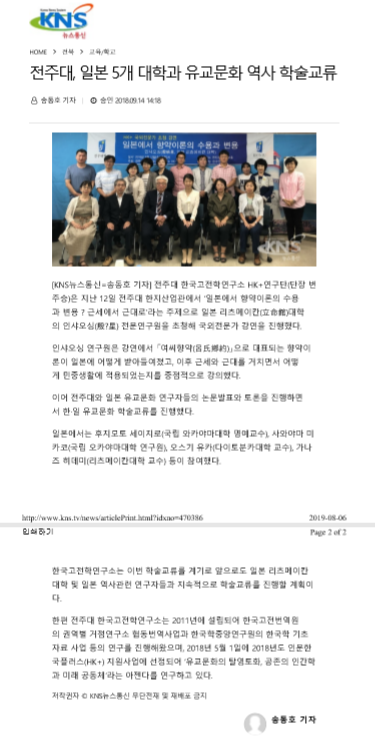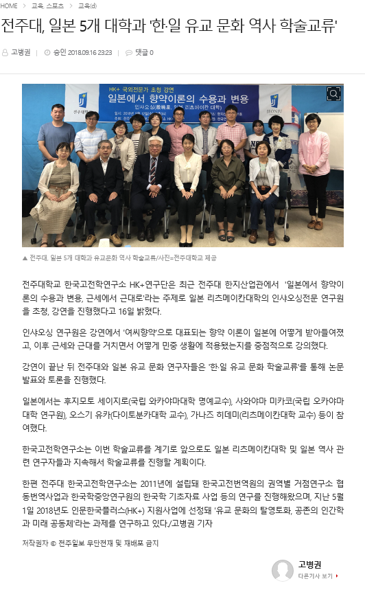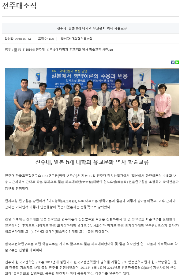 | 52 | 기타 | 전주대, 일본 5개 대학과 '한·일 유교 문화 역사 학술교류' | 온다라 지역인문학센터 | 19-08-07 | 238 |