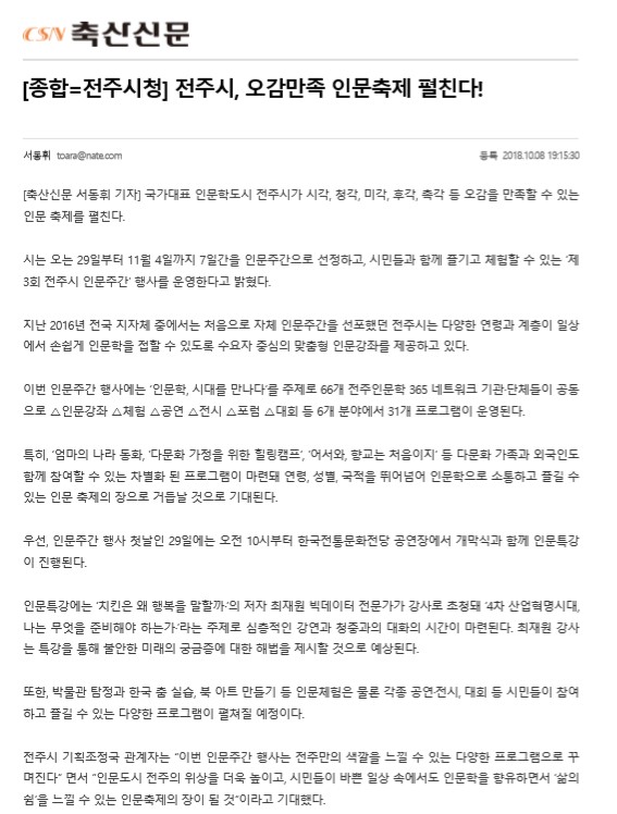 [종합=전주시청] 전주시, 오감만족 인문축제 펼친다!