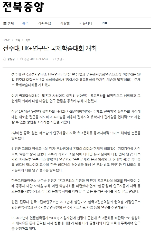 한국고전학연구소 HK+연구단 국제학술대회 언론보도자료