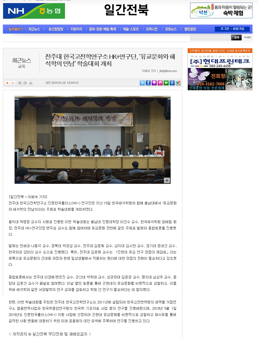 한국고전학연구소 HK+연구단 국내학술대회 언론보도자료