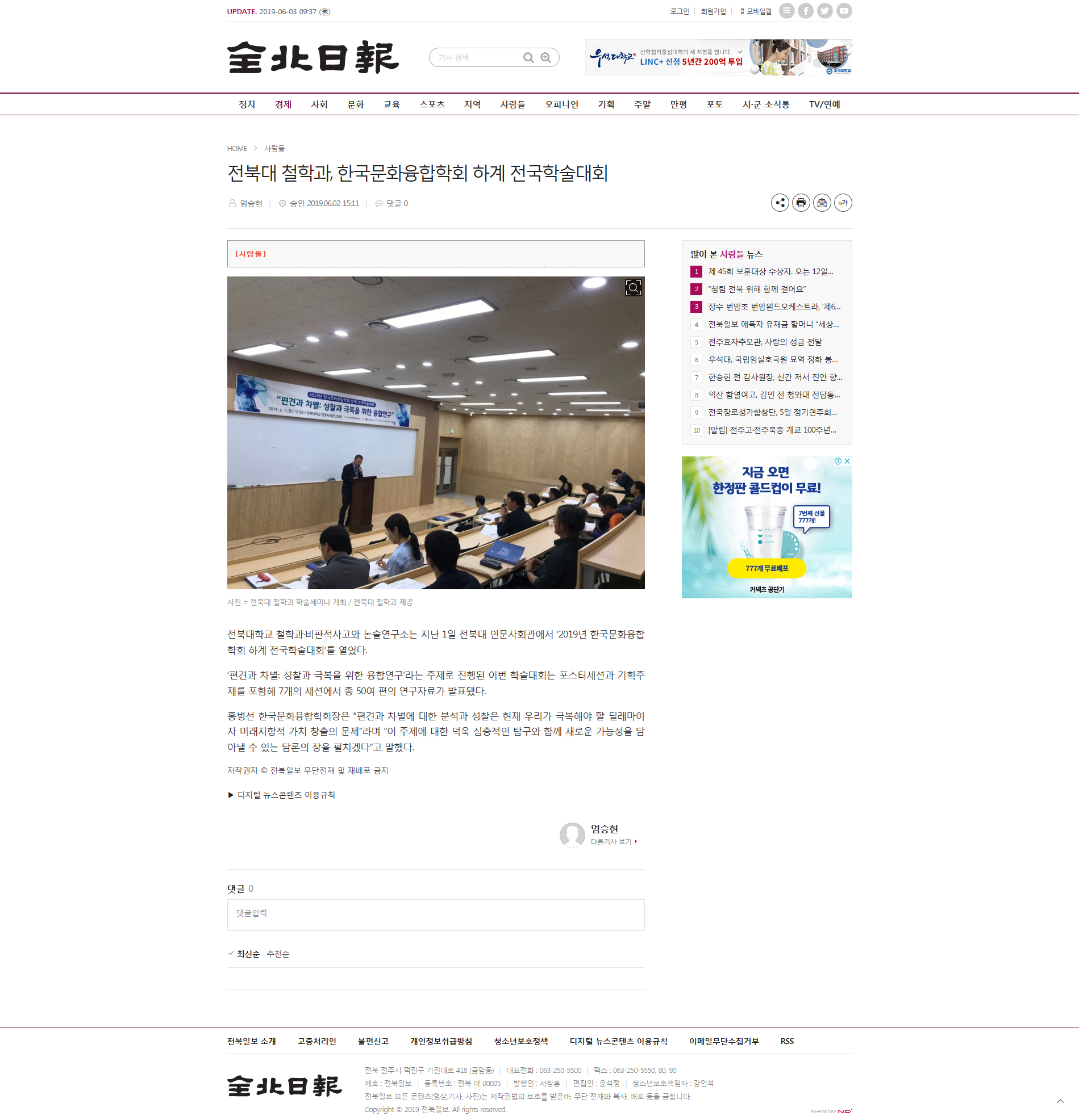 | 25 | 기타 | 전주대학교 역사문화콘텐츠학과 변주승 교수, 국사편찬위원회 위원 위촉 | 한국고전학연구소 | 19-04-25 | 1569 |